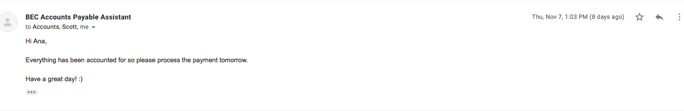 After you’ve received payment authorization confirmation, as in the example email below, it’s time to process the payments.