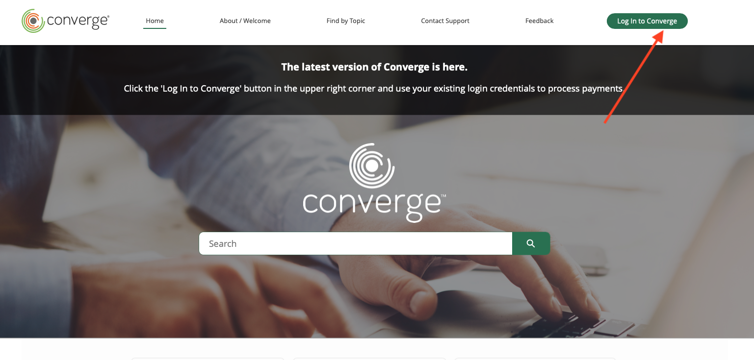 Navigate to https://support.convergepay.com/s/ and click the log in button located in the top right hand corner