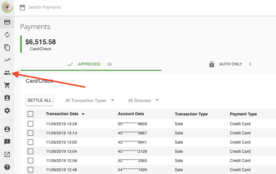 From the dashboard, click on the ‘customers’ icon on the left hand vertical tool bar as shown below.