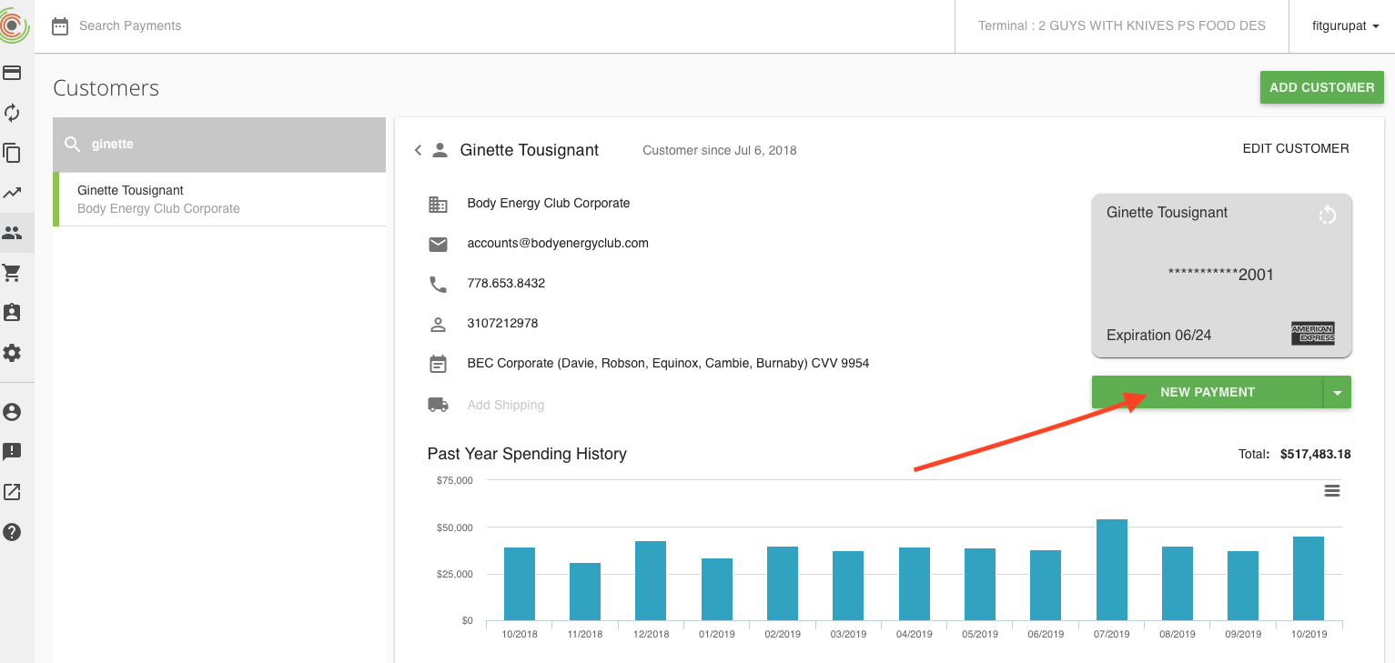 Search and select ‘Ginette Tousignant’ and click ‘new payment’ as shown below.
