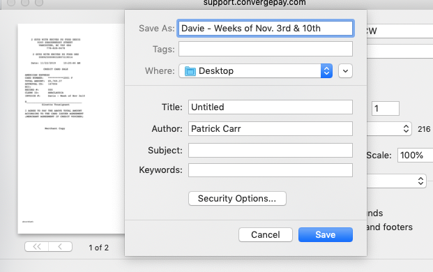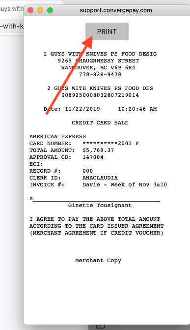 After you’ve completed all Corporate Store payment transactions, you must generate a pdf copy of each transaction receipt for email.