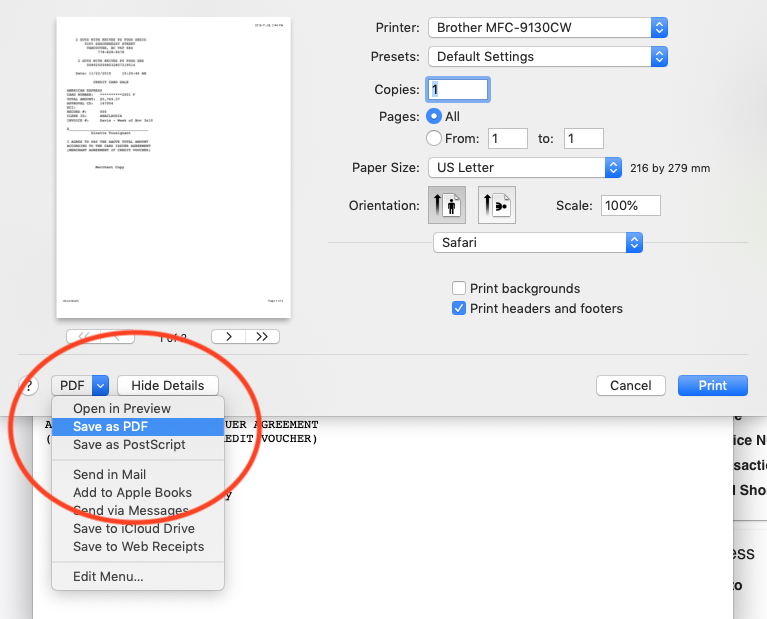 Repeat these steps to generate a pdf transaction receipt for each corporate store payment.
