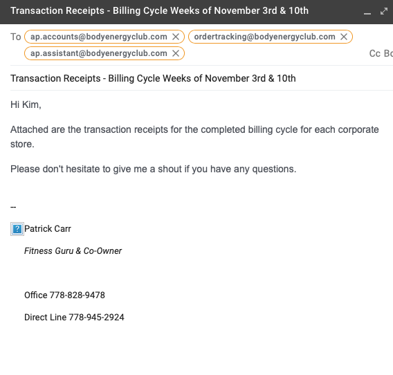 Once you’ve generated all of the store transaction receipts, you’ve reached the final step of emailing those receipts to the BEC accounts team.