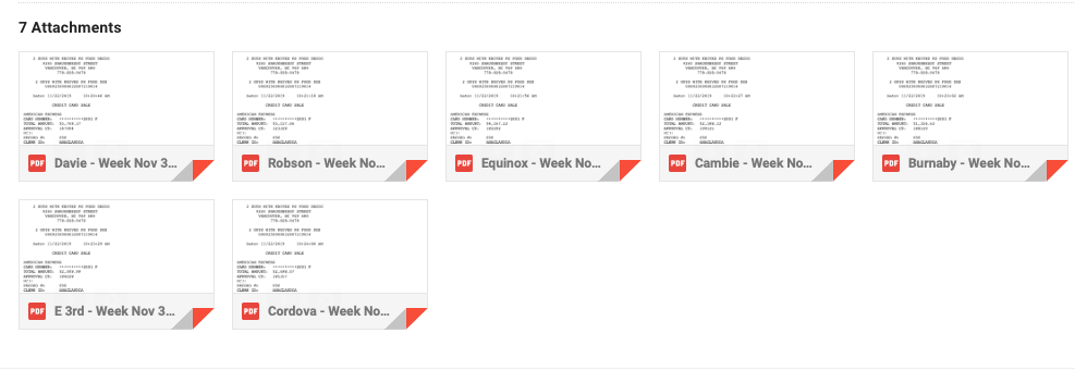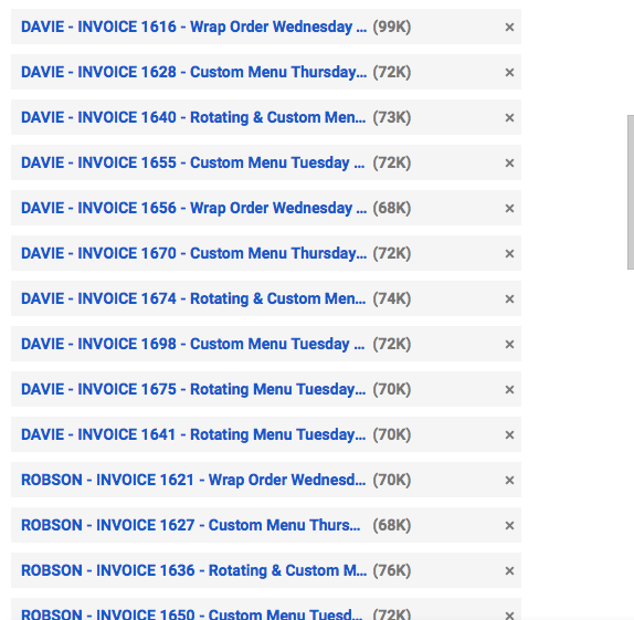 - Confirm one by one that the Number of Invoices for each store is correct. Davie, Robson & Equinox will have 10 invoices per cycle as they have an additional Wrap Order delivery on Wednesday’s whereas all other corporate stores will only have 8 invoices per cycle.