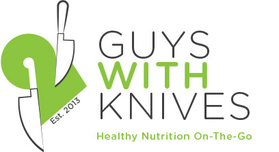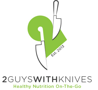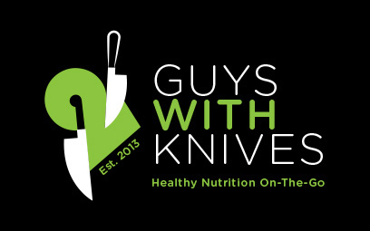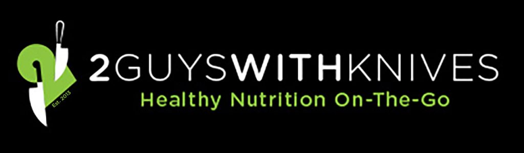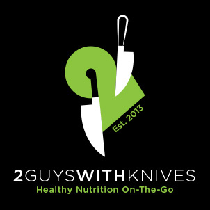 The 2 Guys with Knives logo has 3 different formats, with options in both white and black backgrounds.