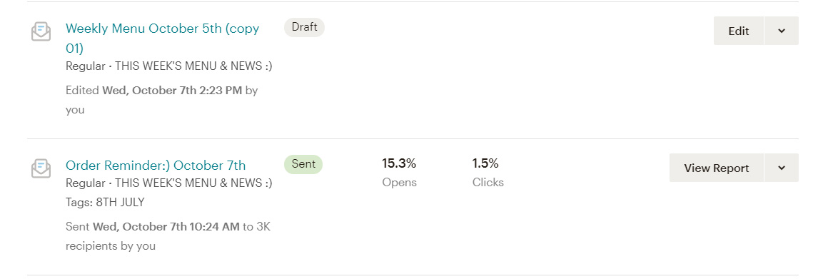 Export the list of people who have already placed their orders. We are not going to send the reminder email to them. To exclude them, we need to apply the Current Week tag to their details, as the Reminder Campaign settings are set up to ignore a specific tag.