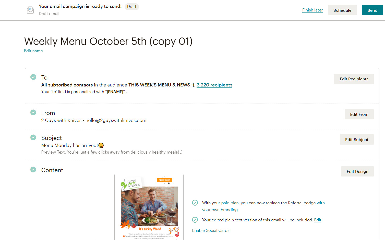 • Now you can edit everything: campaign name, recipients, subject and design.