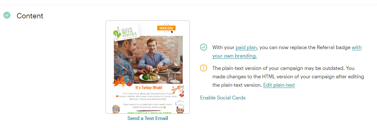 • Always send a test email to yourself. Verify its visualization and links both on desktop and mobile.