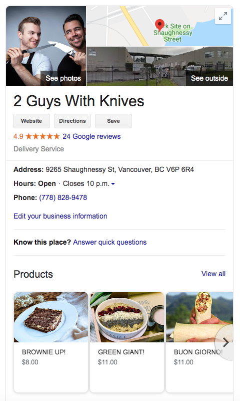 It’s where Google My Business (GMB) shines! Through GMB, we can improve direct results, providing information about how to find and contact us, showing client reviews, posts, photos and displaying photos.