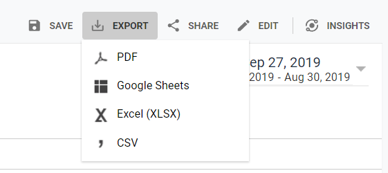 To download a report, go to the menu in the top right corner, click on ‘Explore’ and choose PDF.