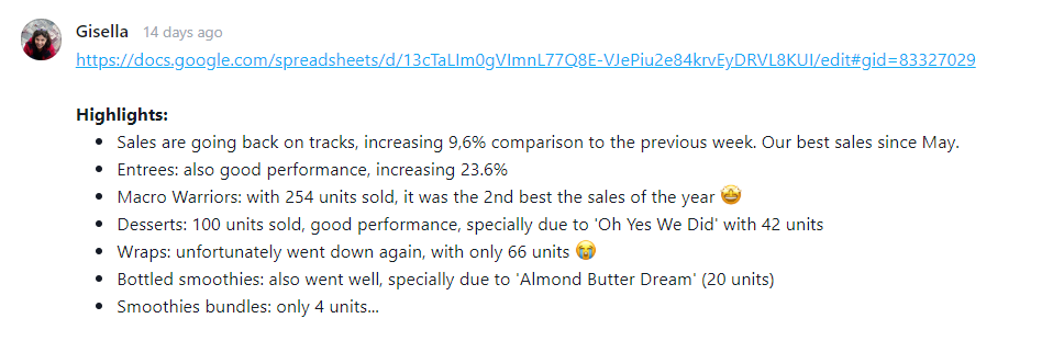 - When possible, try to connect events with sales (was it a week with a holiday? did you do any promotions on social media?)