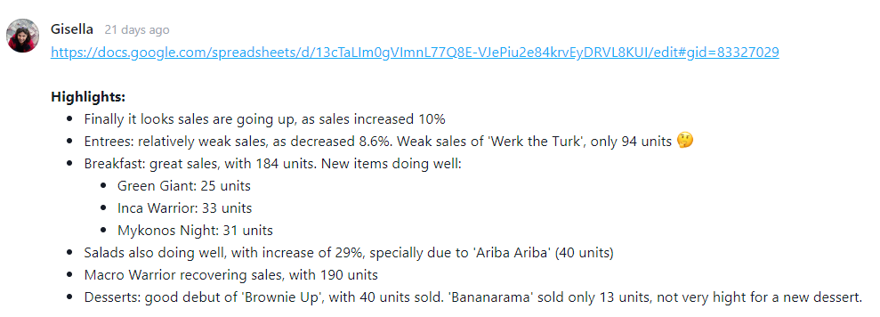 Your analyse will help Patrick and Sergio in making adjustments to the menu, highlighting products that maybe need a replacement, or having an outstanding performance.