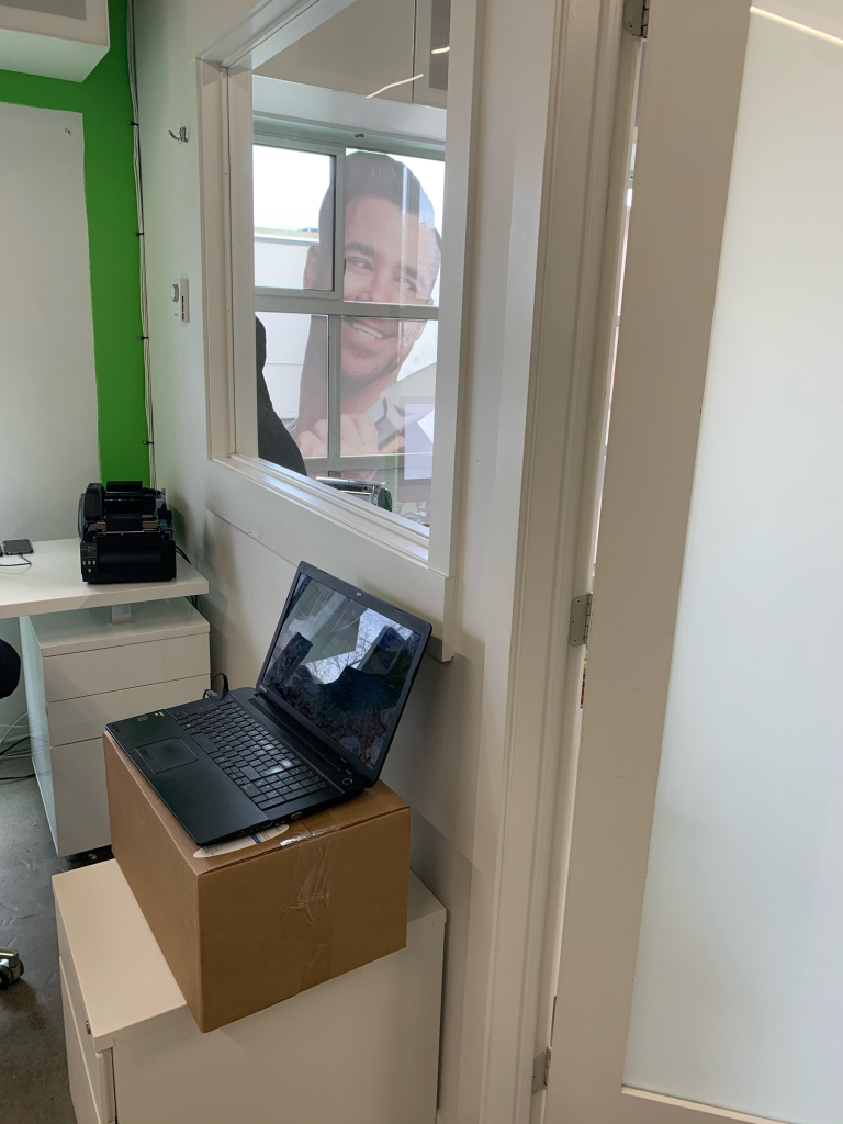 - The label computer is located directly on the small white drawer desk in the right corner of the office (or on the corner when facing towards the window. It is the only Asus laptop in this company.