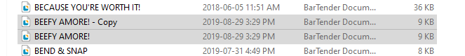 Accessing the bartender software is as fast as it is flexible. So much so, that the program will automatically launch when you open any bartender file! You heard right, all you need to do to launch bartender is open the Bartender folders on the desktop like the one titled ‘LABELS.’