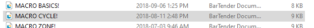 To update this information, enter the bartender software, select the label file to edit as shown in the image below (in this case “Macro Cycle) and double click it to open.