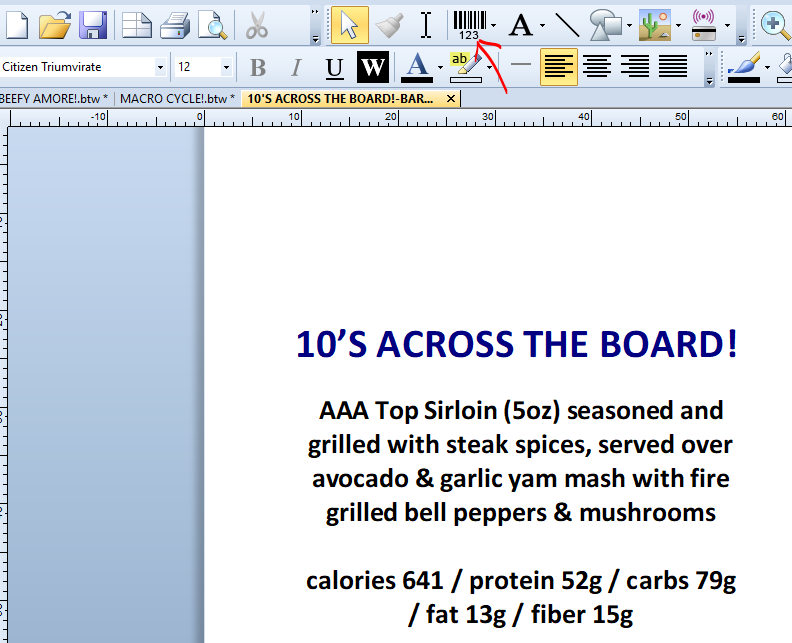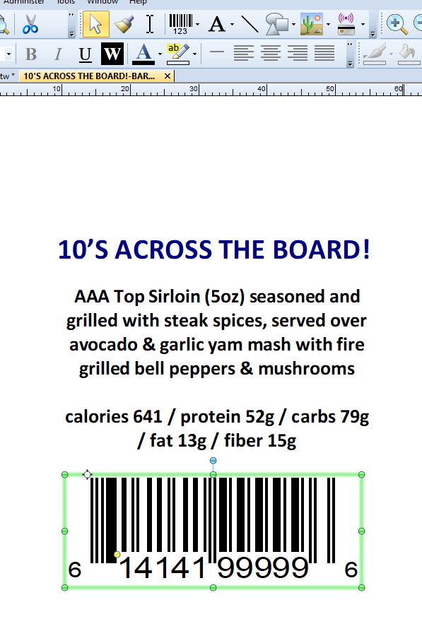 NOTE: if you are creating a label template for a wholesale dish you will also need to add a barcode. Reference “creating barcodes” for information regarding this step