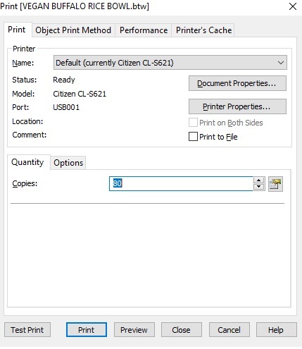 If all items are correct, enter the number of labels you need in the copies field and print away.
