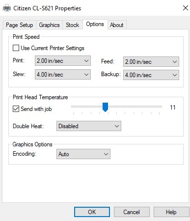 - Make sure that the Use Current Printer Settings box is not selected. From here we can change the printing speed. Printing at a slower speed can help when are having trouble printing labels that are printing poorly. The default is Print: 4.00 in/sec Feed: 4.00 in/sec, Slew: 4.00 in/sec and Backup: 4.00 in/sec. In the image below you will see that it is set to 2.00 in/sec for both Print and Feed.