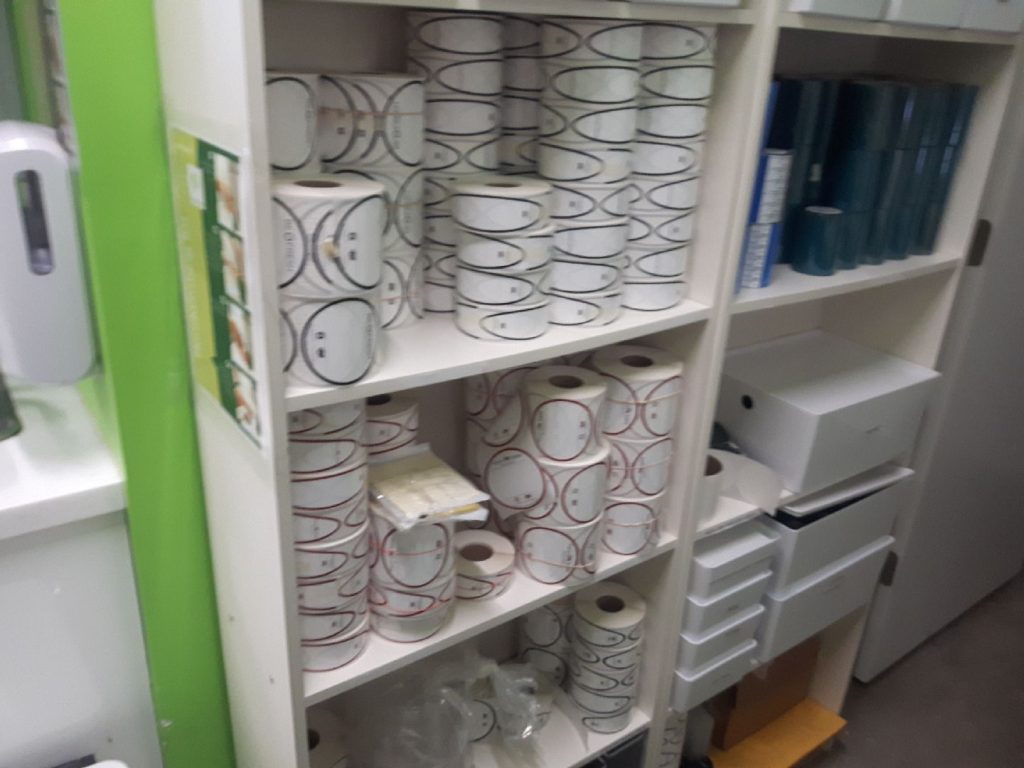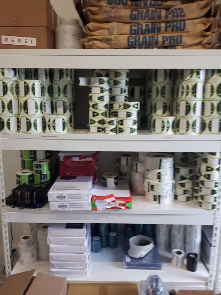 The paper label products (bottom shelve of above pic and left side of below pic) are used for our Body Energy Club meal program & new white label menu accounts. These labels have a matte finish and cannot be removed from the lids once applied.