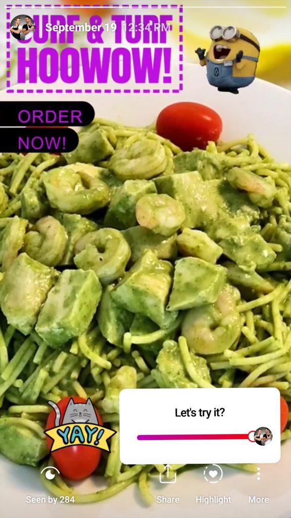 - Play and test the effects, text and stickers you want to use to highlight your Story.