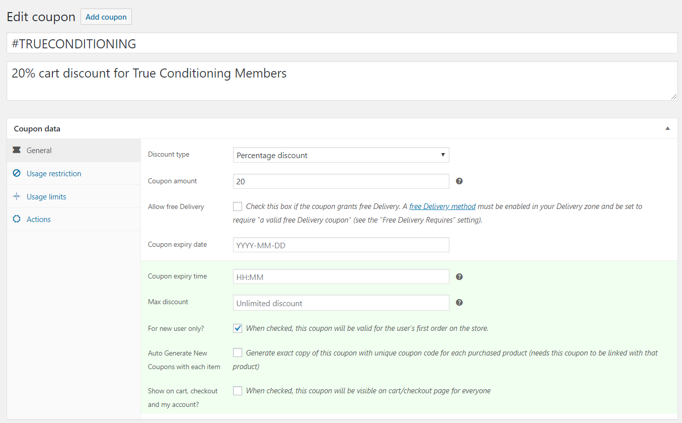 For the new promo code, on the ‘General’ tab:
