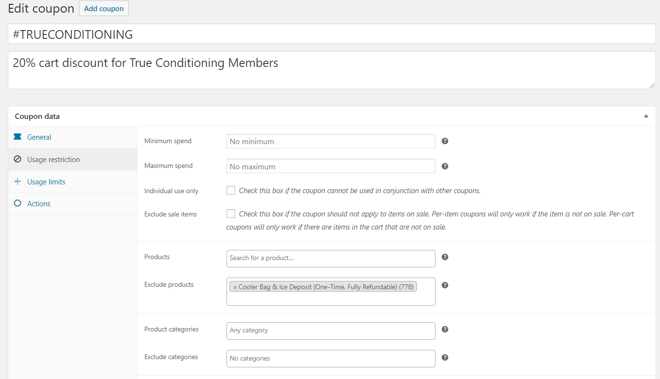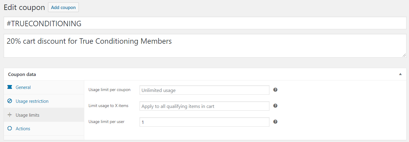 - Cupon amount: the percentage or amount of the discount